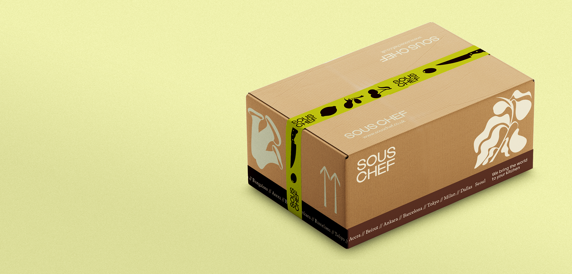 Roll-out of brand identity, packaging, communications and exhibition design for foodie e-retailer Sous Chef.