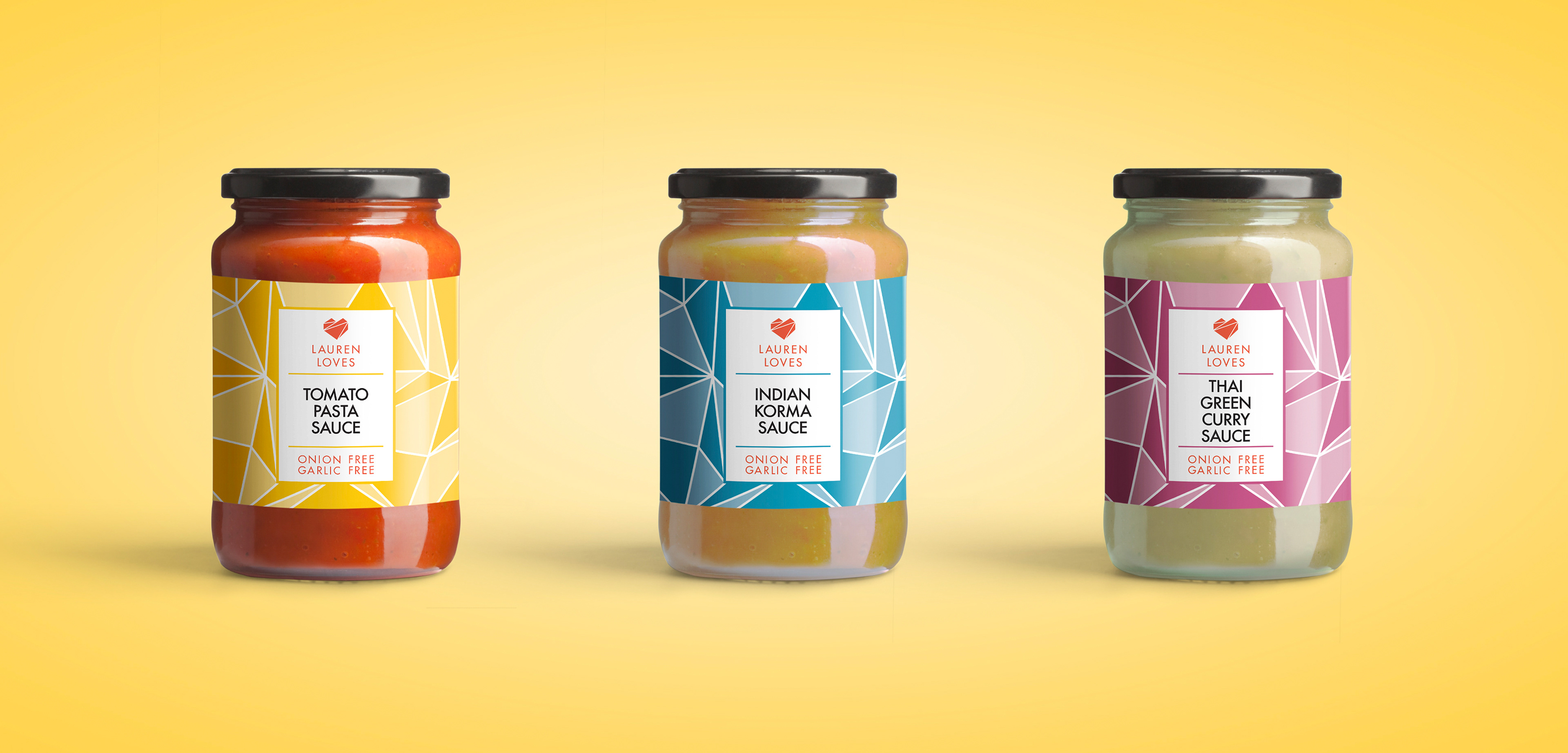 LAUREN LOVES Identity and packaging for Lauren Loves – low fodmap sauces and recipes.