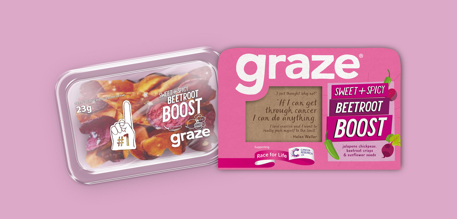 GRAZE + RACE FOR LIFE Limited edition charity packs and in-store theatre for Graze supporting Race For Life.