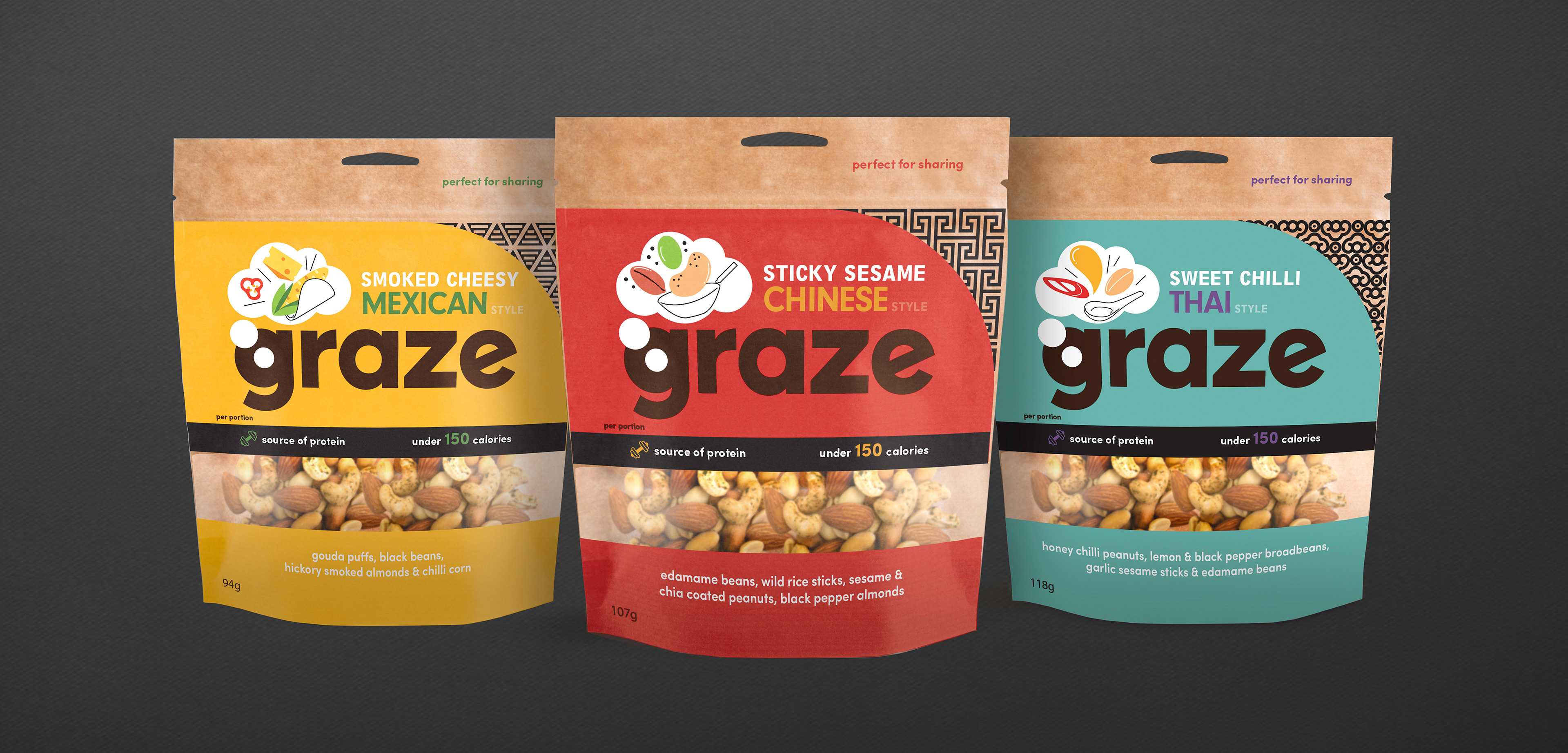 GRAZE Bringing the flavours of popular cuisines from around the world, a range of nut mixes were developed as part of Graze’s new brand proposition – snacking reimagined.